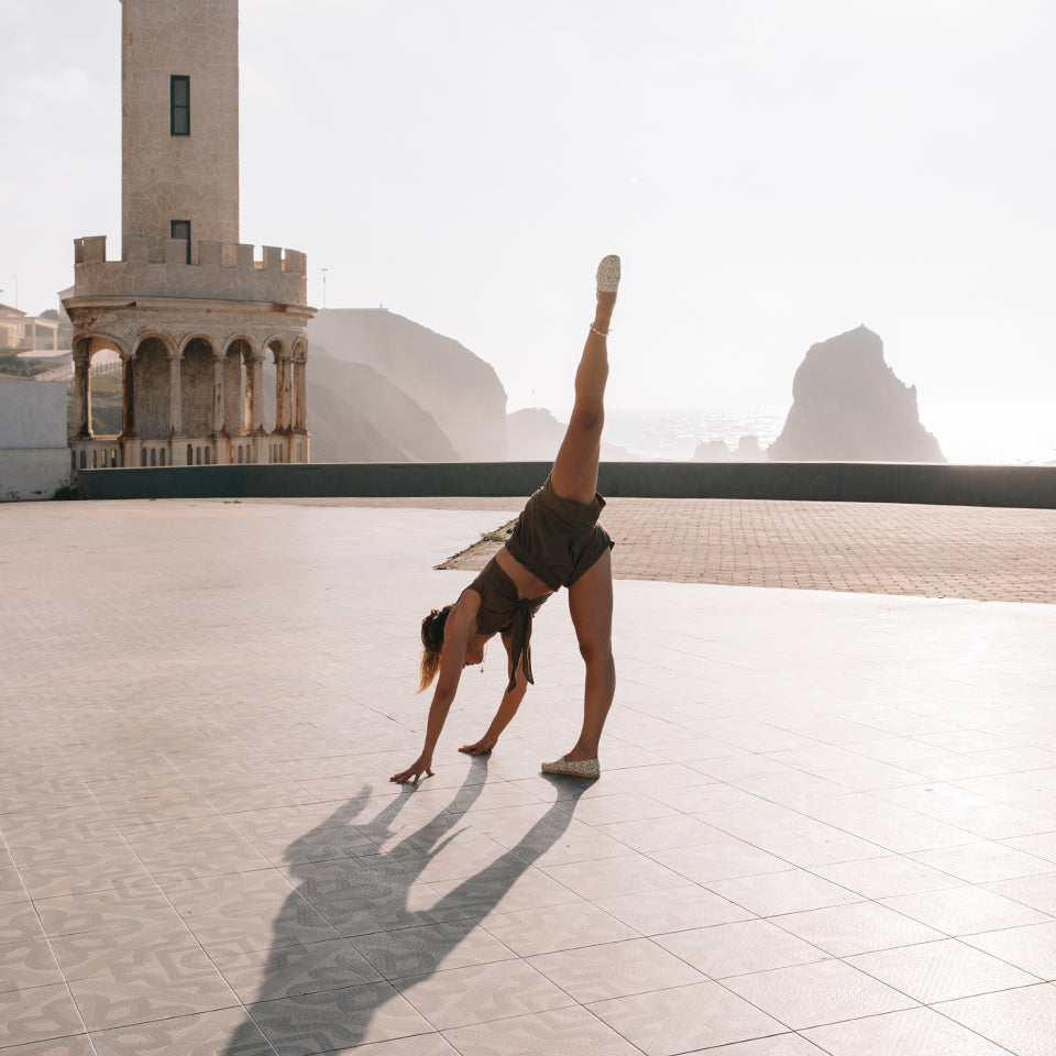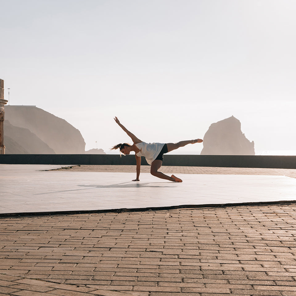 A: I started ballet at the age of three, when I did the Royal Academy of Dance, then continued to the national conservatory of dance and finished at the Escola Superior de Dança, which also took me out of Portugal for a few months. Along the way I experimented with various styles of dance like street dance, tap dance, among others, and I always needed to do physical exercise in parallel, as part of my routine. This is where the beginnings of ballet body classes started: combining my knowledge of dance and many years of teaching, specifically classical and contemporary dance, with my knowledge of fitness. The yoga certification comes later, when I start to feel a strong need to "calm my mind", to relieve the stress and pressure of everyday life and to cultivate this calm and focus, in my life. This is how ballet yoga emerged, to join the other types of ballet body that already existed and exist in the digital studio bbodybarre.com: ballet barre, ballet HIIT & Cardio, ballet flow and ballet stretch. Ballet Yoga is an amalgamation of yoga practice, more vinyasa style, with the inclusion of some ballet postures and positions and that aims to help in gaining strength, mobility, flexibility, but also in focus, breathing and being present.
